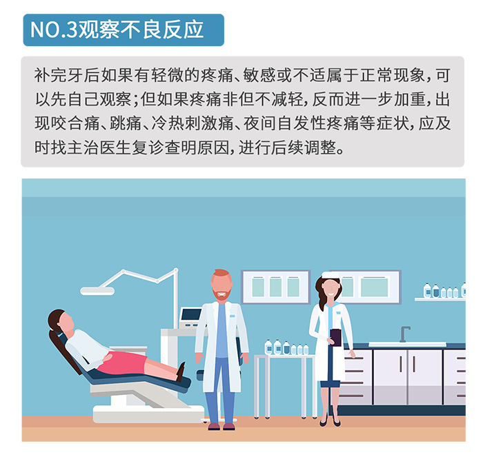 不過,如果補(bǔ)完牙后痛感明顯,過了好幾天都沒緩解,又或者是長期的自發(fā)痛,刺激痛,那可就得重視起來,有可能是