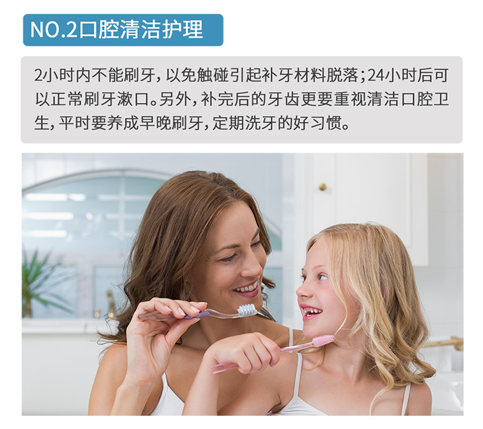 補(bǔ)完牙齒后的養(yǎng)護(hù)工作關(guān)乎著牙齒的使用壽命。若因護(hù)理不當(dāng)導(dǎo)致繼發(fā)齲,需要二次補(bǔ)牙,不僅多花冤枉錢,對牙齒的傷害更甚。
