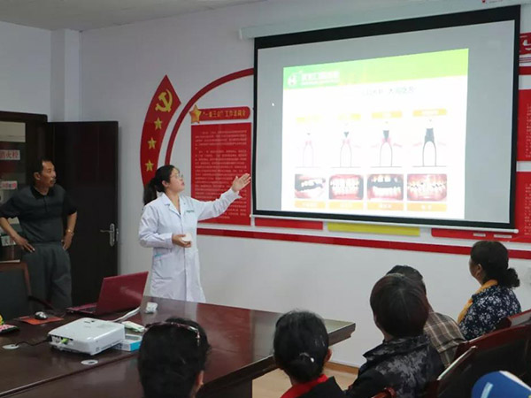 早上9:30,成宏口腔醫(yī)務(wù)人員主要從牙齒的作用、如何保護牙齒、牙疼怎么辦、牙缺失危害、牙周疾病的治療以及口腔健康維護等方面,進行了詳細的講解,為昌圩社區(qū)居民帶來了一場精彩的口腔科普講座。