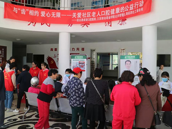 為倡導健康生活方式,提高全民素質(zhì),增強居民口腔健康觀念和自我保健的意識,2019年5月22日上午,連云港成宏口腔醫(yī)院與江蘇財會職業(yè)學院公共管理系、海英草社工事務(wù)所聯(lián)合舉辦與“齒”相約,愛心無限——關(guān)愛社區(qū)老人口腔健康的公益行動。活動現(xiàn)場,成宏口腔醫(yī)院醫(yī)務(wù)人員為昌圩社區(qū)50多名居民進行了口腔科普講座和公益義診活動,讓居民認識到了口腔健康的重要性。